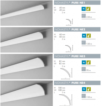 Akademia sztukaterii, dystrybutor dekoracji nmc prezentuje NOMASTYL PURE - kolekcję nowoczesnych, minimalistycznych listew ściennych zaprojektowanych zgodnie z konceptem "złotej proporcji".