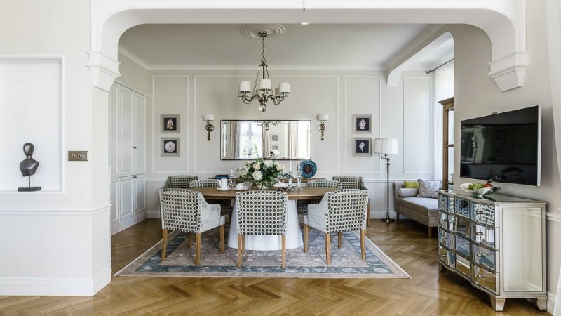 Prezentowane aranżacje mają charakter inspiracyjny. Pochodzą z Internetu i przedstawiają wnętrza ze sztukaterią zaprojektowane przez polskie pracownie projektowe