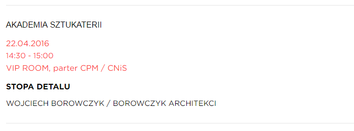 Akademia sztukaterii zaprasza na inspirujący wykład STOPA DETALU podczas I Ogólnopolskich Targów Pracy dla Uczelni Artystycznych, który odbędzie się 22.04.2016 o godzinie 14:30 w Akademii Sztuk Pięknych im. Władysława Strzemińskiego w Łodzi (ul. Wojska Polskiego 121).